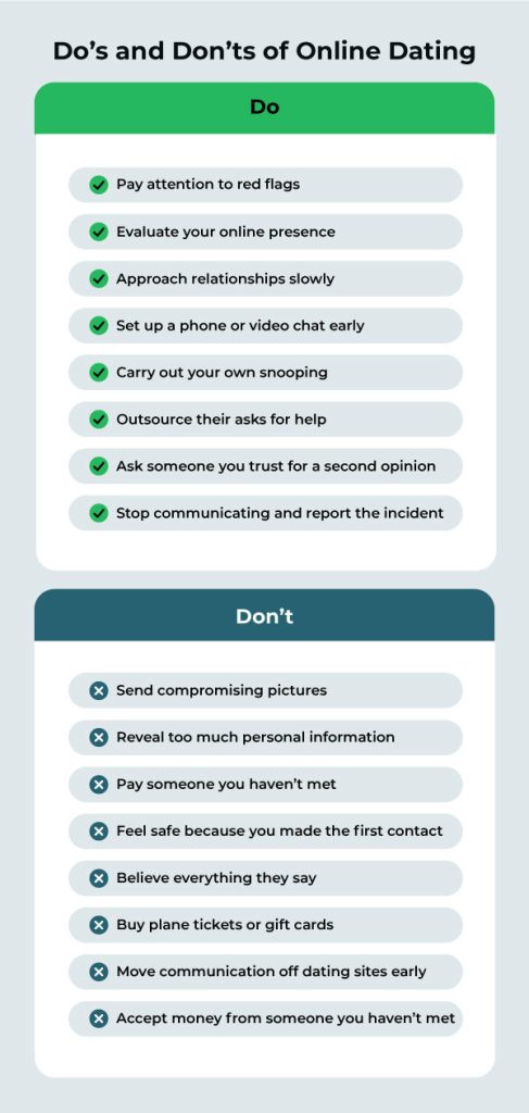 When you interact with someone online or get a call from a stranger, it is wise to limit the amount of information you share. Even if you are romantically involved, you must avoid divulging sensitive information that you wouldn’t share with your close ones. Try to scrutinize every word they say, as you do not know their background, motives, or even intentions.